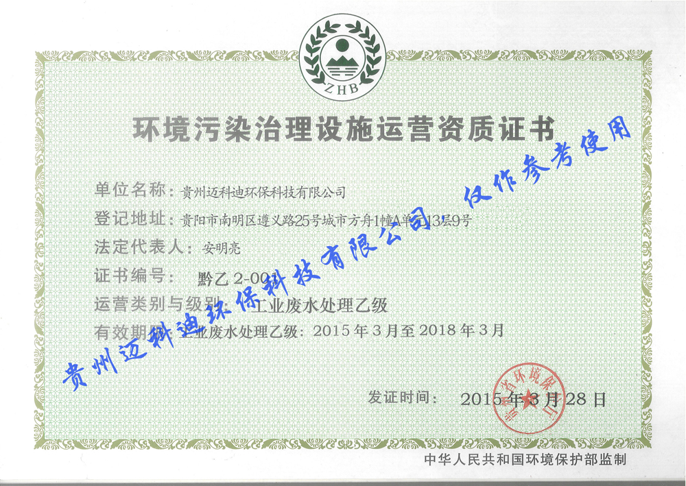 貴州邁科迪環(huán)保科技有限公司,是貴州省一家大型的綜合水處理設(shè)備公司,公司集純水,超純水,污水,工業(yè)廢水工程的設(shè)計(jì),制作,安裝,調(diào)試,售后服務(wù)以及水處理設(shè)備技術(shù)和配件的研發(fā),生產(chǎn),銷售等于一體的大型環(huán)保專業(yè)化生產(chǎn)企業(yè)。本公司擁有高壓脈沖電絮凝水處理技術(shù)。在重金屬廢水處理,焦化廢水處理,磷化廢水處理,制藥廢水處理,皮革廢水處理,化工廢水處理,電鍍廢水處理,石油天然氣鉆井廢水處理等領(lǐng)域,取得了驕人的成績。公司經(jīng)過多年的研究實(shí)踐,制研發(fā)出一體化工業(yè)廢水處理設(shè)備,一體化電子高壓脈沖電絮凝設(shè)備...